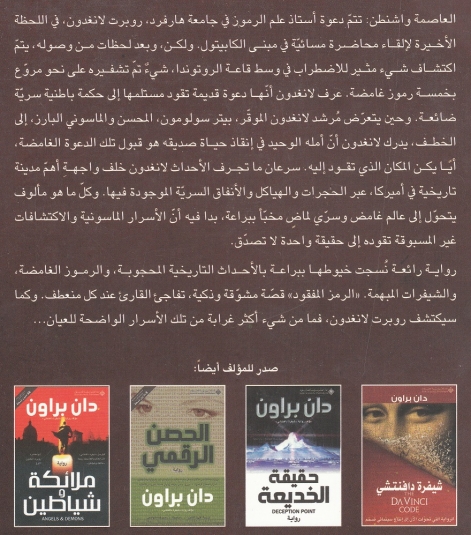 Dan Brown-Das verlorene Symbol (Arramz Almafqoud) Dan Brown- Übersetzt durch Zayna Jaber Idris + 1 Bild Sprache: AR 38,00 € In den Warenkorb 480 Seiten (24x17 cm), 750gr. Auflage 2010, Softcover 1 passende Produkte Dan Brown-Täuschung Punkt (Haqiqatu Alkhadiea) 14 Millionen Exemplare verkauft Sprache: AR 33,00 € In den Warenkorb