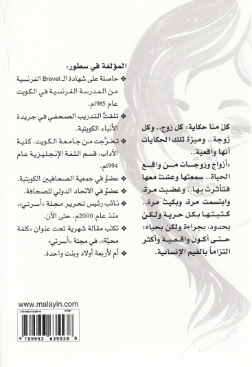 كل منا حكاية: كل زوج..وكل زوجة..وميزة تلك الحكايات أنها واقعية.. هي حكايات من واقع الحياة...سمعتها وعشت معها فتأثرت بها..وغضبت مرة وابتسمت مرة، وبكيت مرة..كتبتها بكل حرية ولكن بحدود، بجرأة ولكن بحياء حفاظاً على القيم الانسانية
