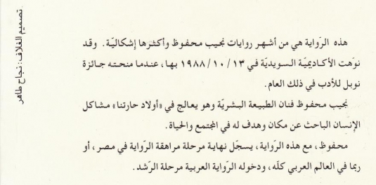 من روائع الأدب لعالمي وهي الرائعة التي حصل عليها الكاتب المصري الشهير نجيب محفوظ على جائزة نوبل للآداب